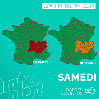 BRIEF Deuxième week-end de vacances et un trafic concentré sur le samedi aux abords des Alpes en rouge, les effets de la météo possible amplificateur.