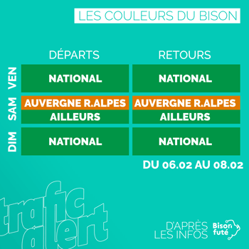 BRIEF Bison Futé est au vert jusqu’au vendredi 5 février veille d’une journée avec de l’orange en Rhône-Alpes.