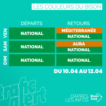 Bison Futé reste au vert aujourd'hui dans les deux sens pour la région.